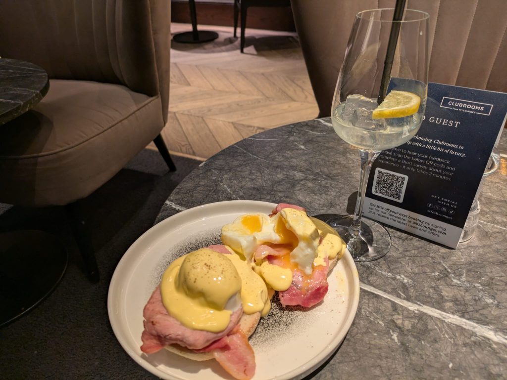 The Clubrooms Lounge at BHX was great as usual and even though it was 4 a.m. I did succumb to a couple of cocktails with my eggs benedict and felt much better for it.