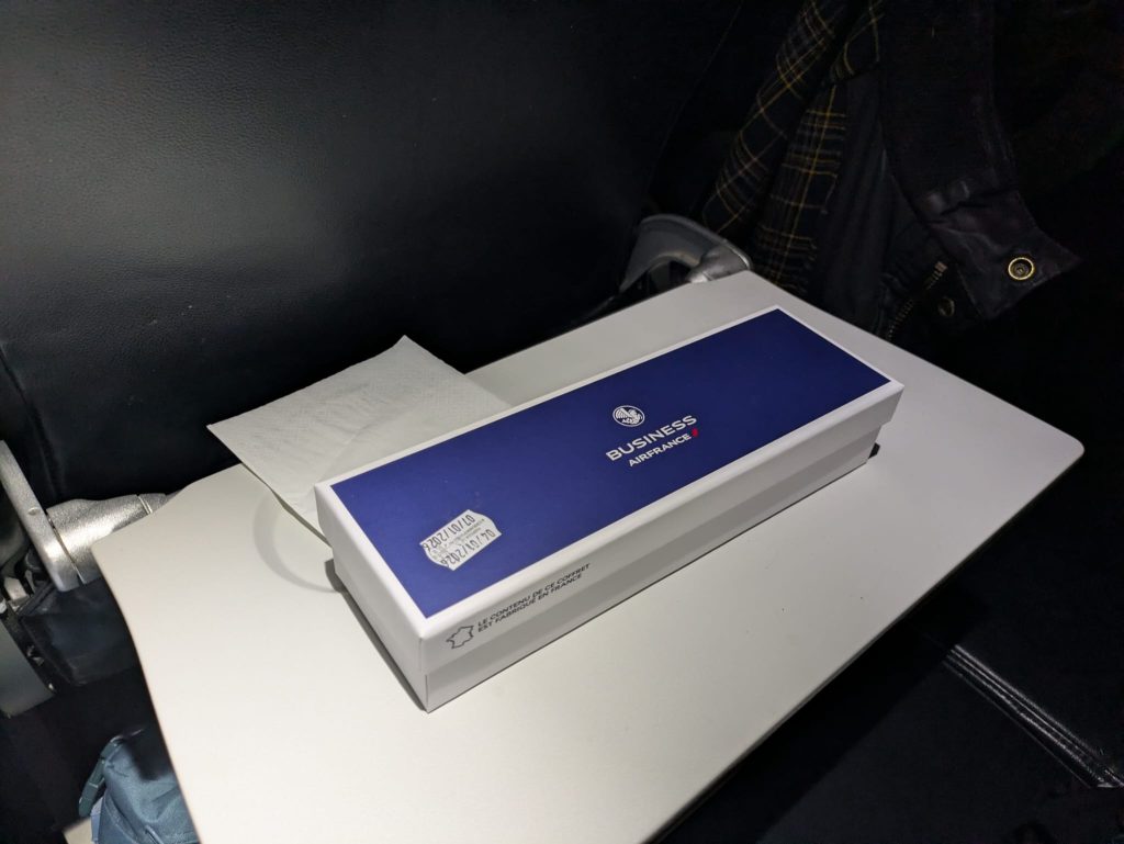 The food offering on the first flight was dreadful and I am going to complain to AF about this. Instead of a breakfast which I would have been offered on my original flight I got this.