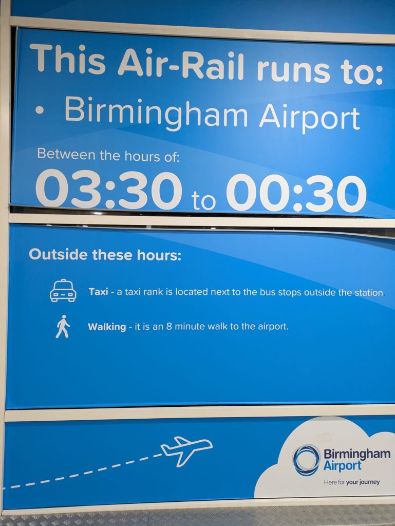 That shouldnt have been an issue BUT the first train from Rugby doesn’t get to Birmingham until around 6 a.m. I also had to drive to Northampton (1 hour round trip) to fetch Sam. Our only train option would leave Rugby at 12:59 so I told him I was on the way and rushed out of the door. When I arrived to pick him up he had the sense to cancel and not travel. On the way home I made the decision to travel alone.