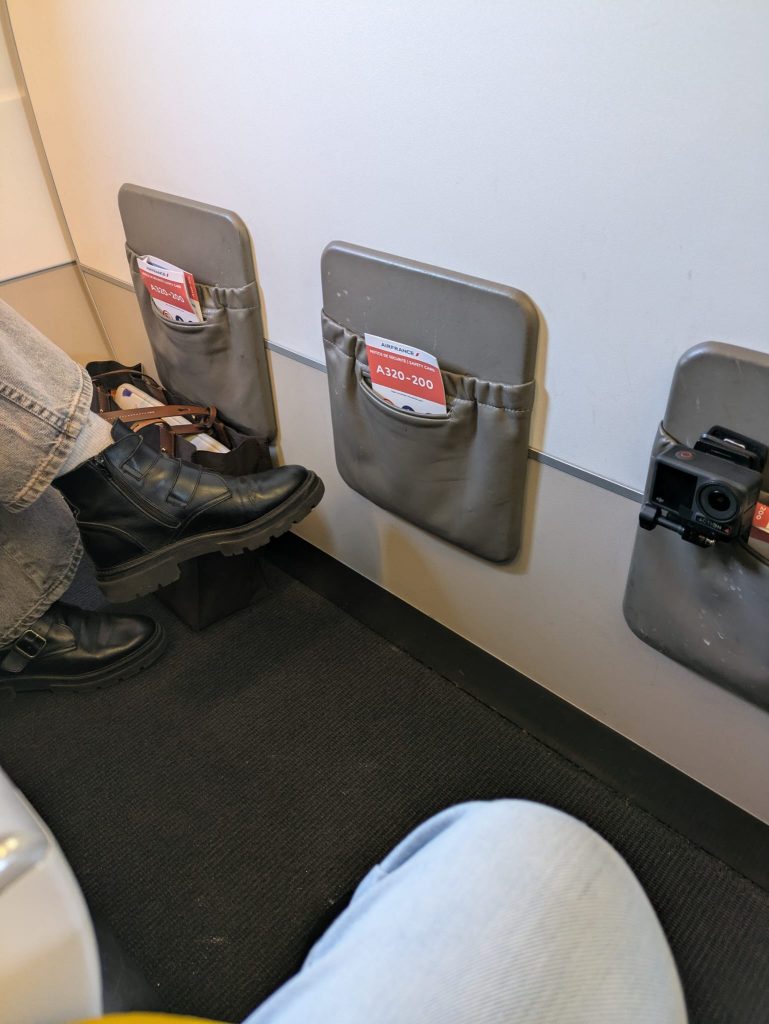 When I sat down I checked the board and saw my flight was flashing go to gate. I ate fast but by the time I got to the gate boarding was underway. So I was on flight 2 of 3 going roughly the opposite direction to Amsterdam. I was headed to Toulouse in the South of France. I hoped I’d make it and navigate the airport in time for my connecting flight. I’d been put in seat 1C which was fine as it had good legroom.